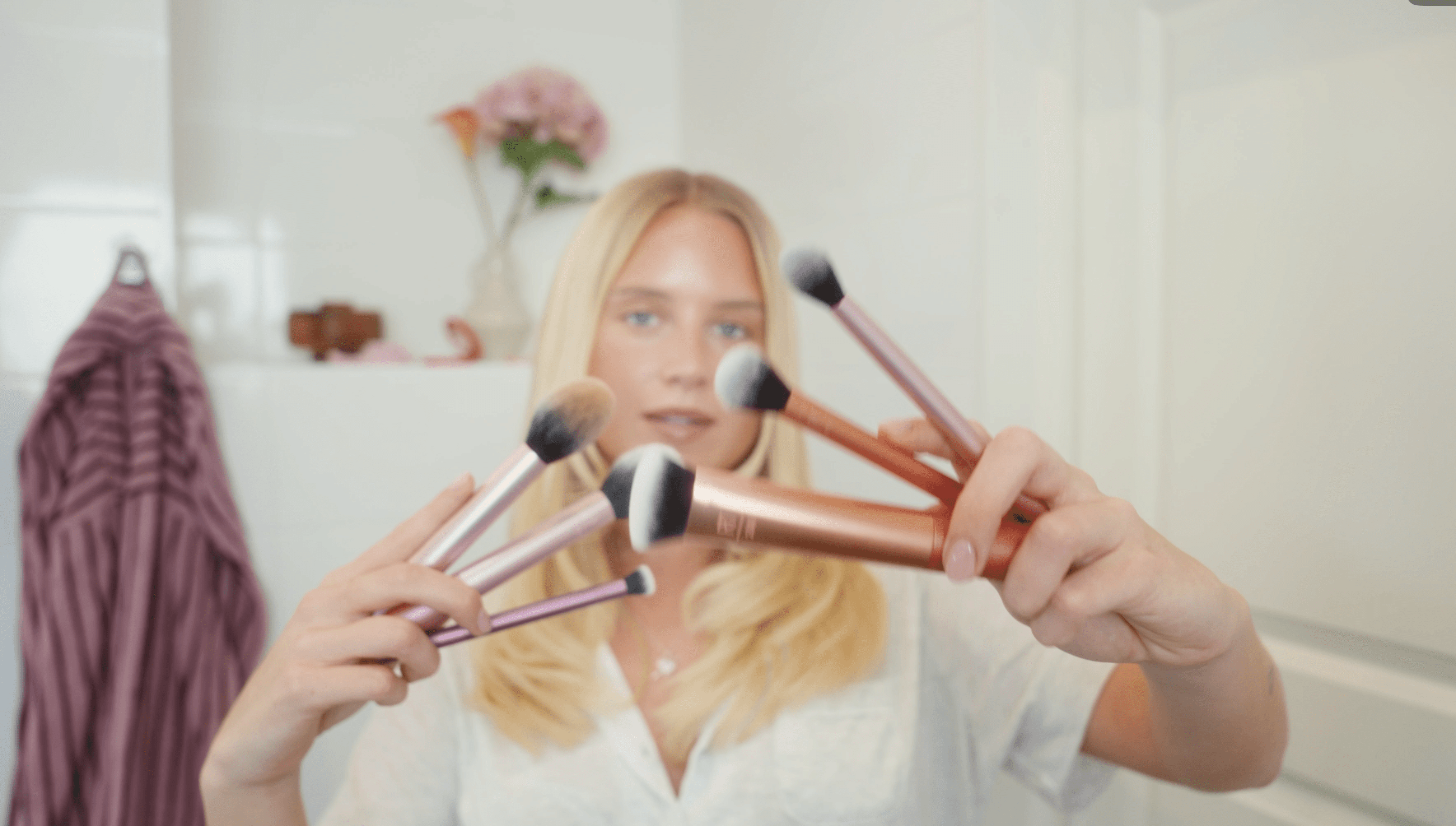 Sminkborstar och svampar som gör proffsteknik tillgänglig för alla. Från badrumshyllan till H&M:s digitala skyltfönster. Vårt uppdrag: att skapa innehåll som visar produkterna i användning – inte på piedestal.