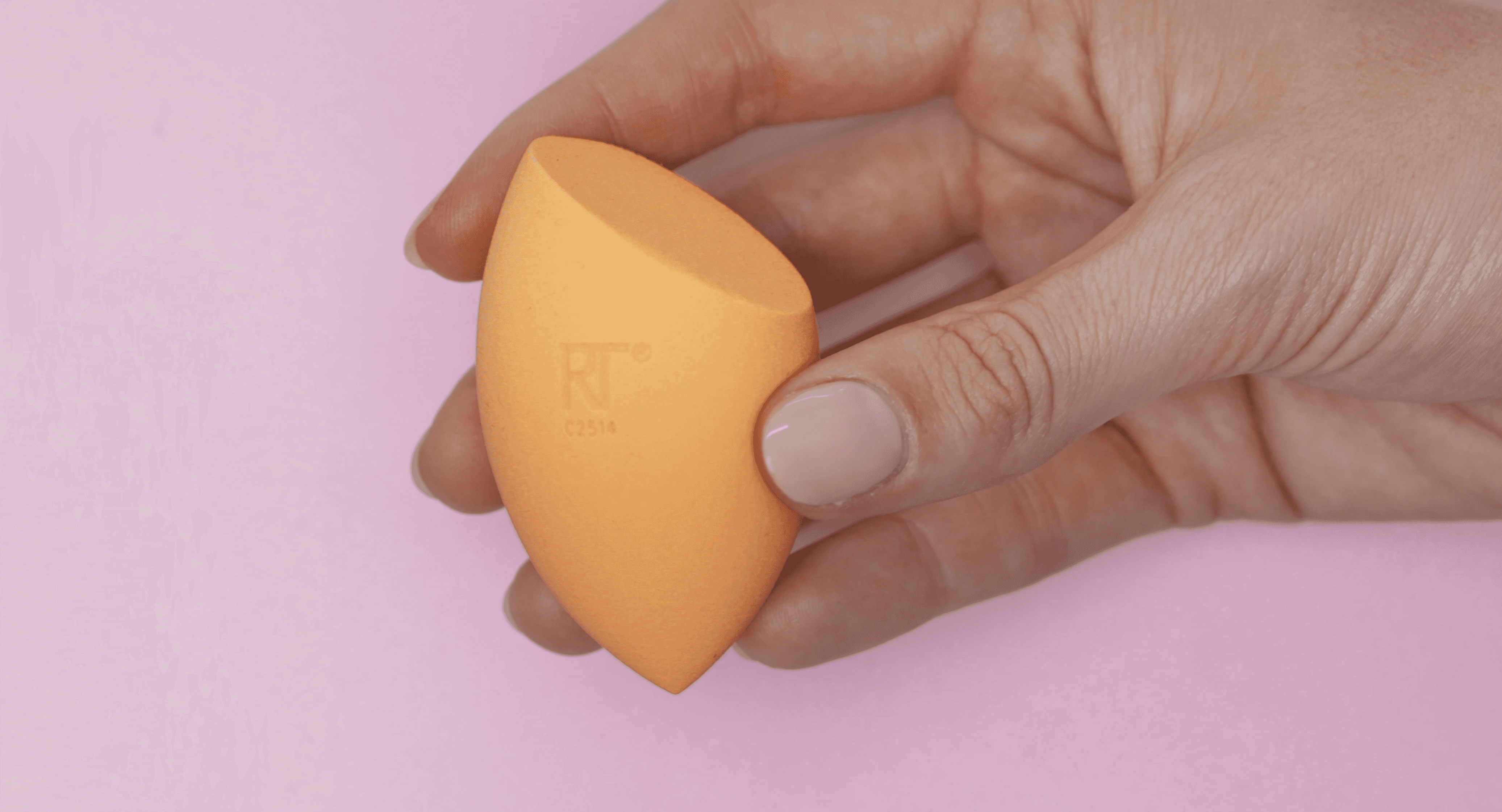 Färgmatchningen mot Real Techniques befintliga produktdesign var medveten. Rosa och orange toner i bild knyter an till förpackningarna och skapar igenkänning utan att vi behöver visa kartongen.