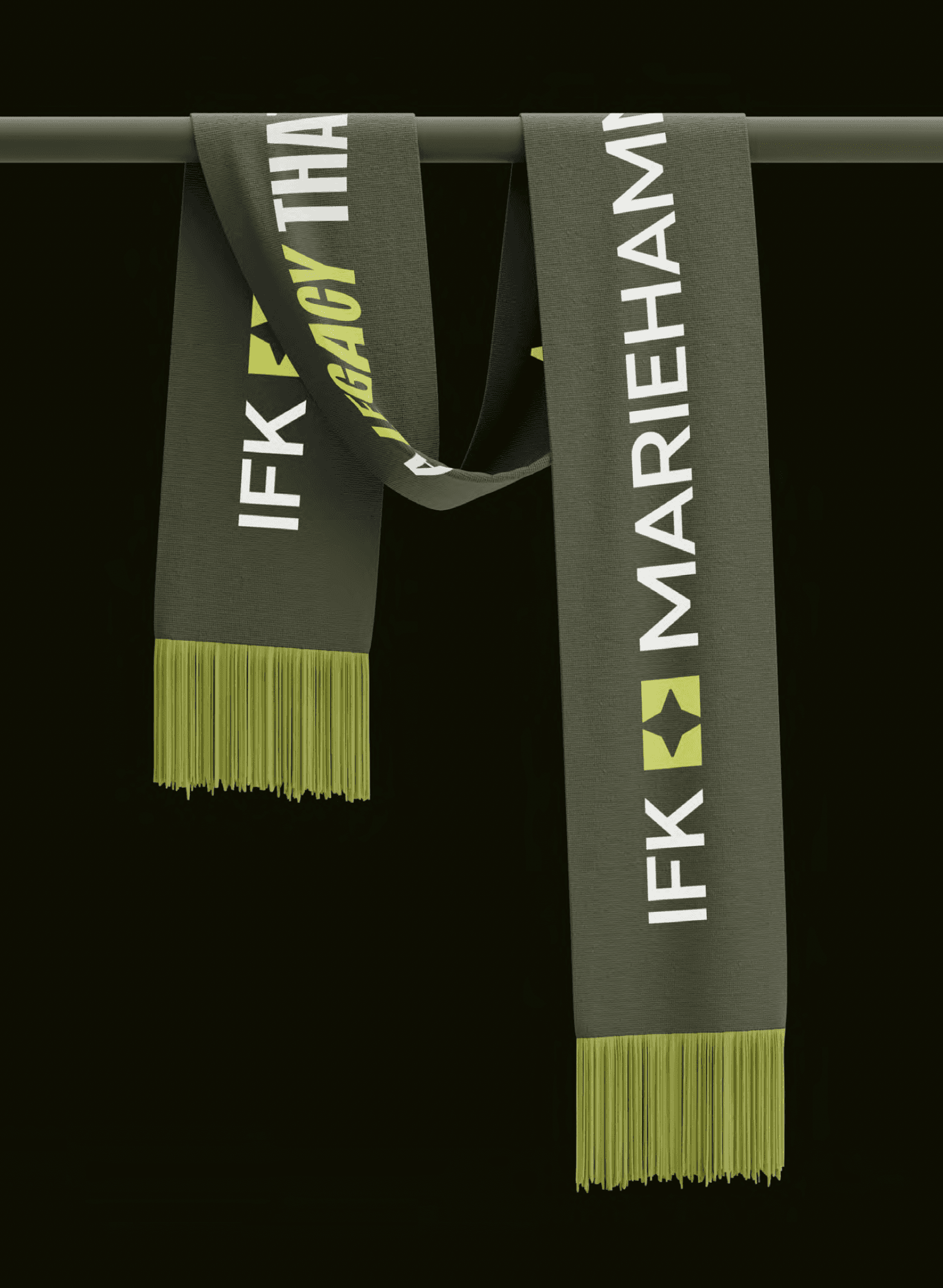 Vi levererade en komplett varumärkesidentitet dokumenterad i en 60-sidig brand book. Leveransen inkluderade ny logotyp med symbol (en fyrkantig stjärna som förenar två element från flaggan), anpassad typografi (Kensington som rubrikfont, Inter Tight som brödtext), en färgpalett byggd kring Lumen Green, Green Earth och White Unity, samt ett grafiskt system med mönster, sigill och stjärnelement. Identiteten tillämpades på matchtröjor, supporterprylar (kepsar, mössor, halsdukar, t-shirts, tygkassar), visitkort, brevpapper, matchbiljetter, tidningsannonser, OOH-material, webbdesign, sociala medier och arenaskyltning.